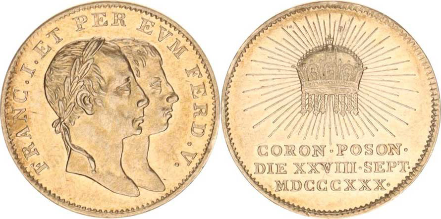 Ferdinand V. (1835-1848), Malý žeton na uherskou korunovaci v Bratislavě 28.9.