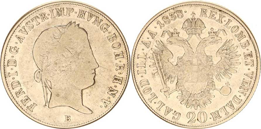Ferdinand V. (1835-1848), 20 kr. 1838 B - orlice