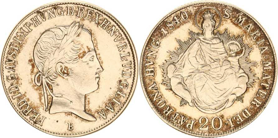 Ferdinand V. (1835-1848), 20 kr. 1840 B - Madona, dr. just., zbytky patiny