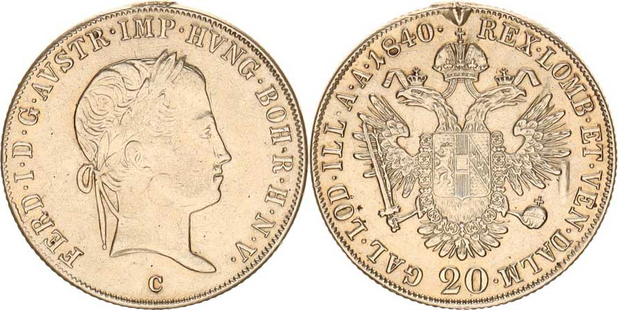 Ferdinand V. (1835-1848), 20 kr. 1840 C, měl ouško, tém.