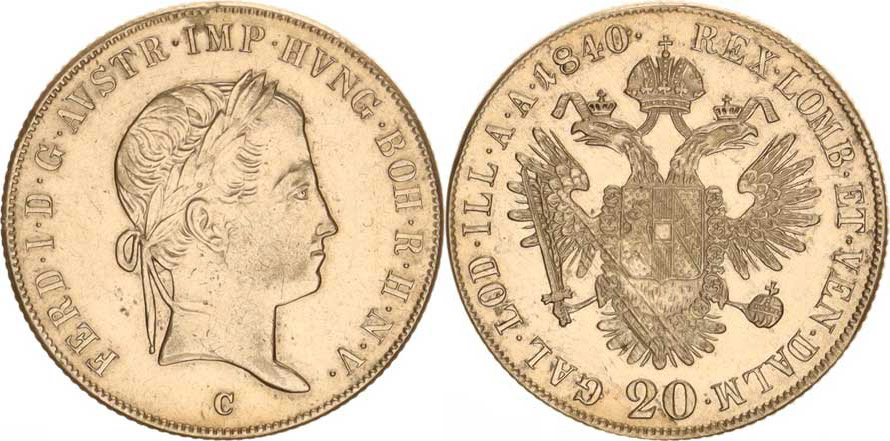 Ferdinand V. (1835-1848), 20 kr. 1840 C, mír. just., dr. hr.