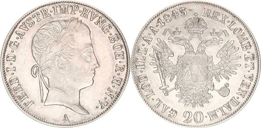 Ferdinand V. (1835-1848), 20 kr. 1843 A "R"