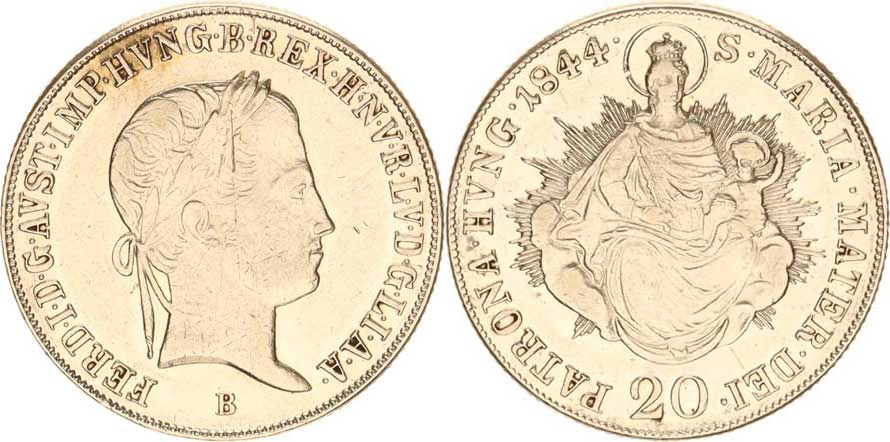 Ferdinand V. (1835-1848), 20 kr. 1844 B, just. v av.