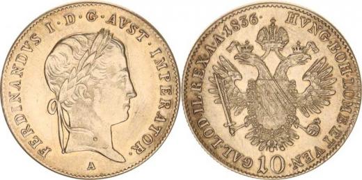 Ferdinand V. (1835-1848), 10 kr. 1836 A - FERDINANDVS "R", nep. just.