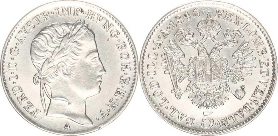 Ferdinand V. (1835-1848), 5 kr. 1846 A