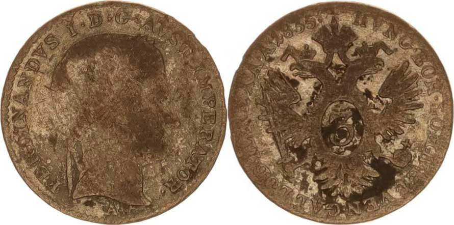 Ferdinand V. (1835-1848), 3 kr. 1835 A - FERDINANDVS "R"