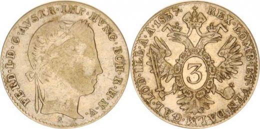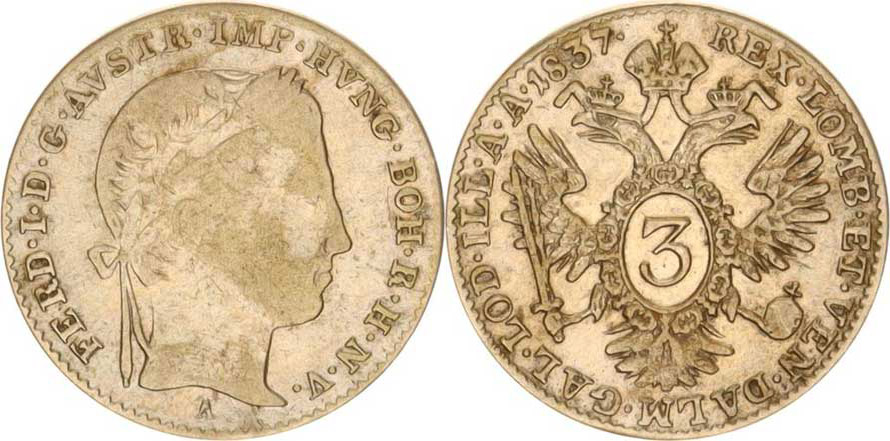 Ferdinand V. (1835-1848), 3 kr. 1837 A, tém.