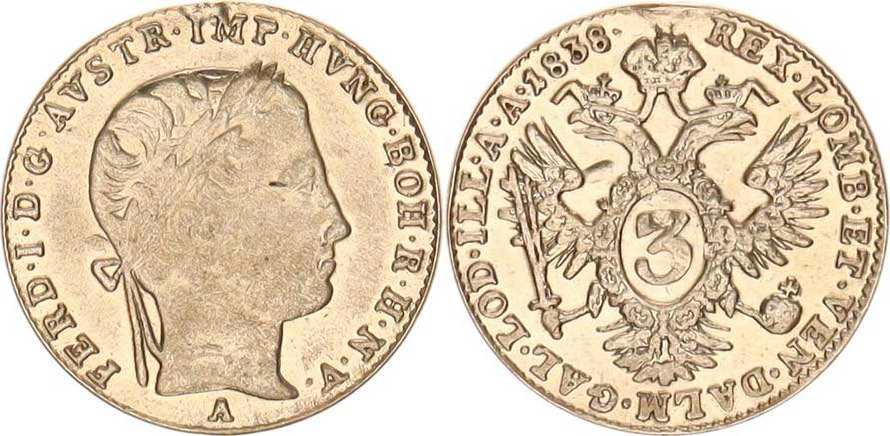 Ferdinand V. (1835-1848), 3 kr. 1838 A "R", nep. stopa