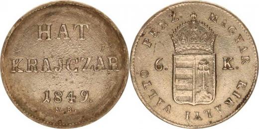 Revoluce 1848-1849, Hat = 6 Krajczár 1849 NB, dr. rys.