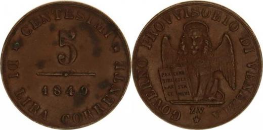 Revoluce 1848-1849, 5 Centesimi 1849 ZV, dr. ox. skvr.