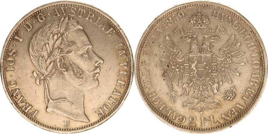 František Josef I.(1848-1918), Dvouzlatník 1859 B, dr. rys.