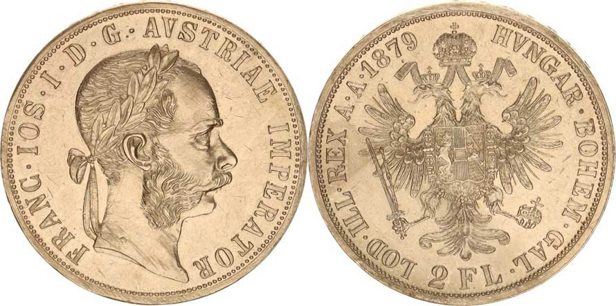 František Josef I.(1848-1918), Dvouzlatník 1879 b.zn., dr. rys.