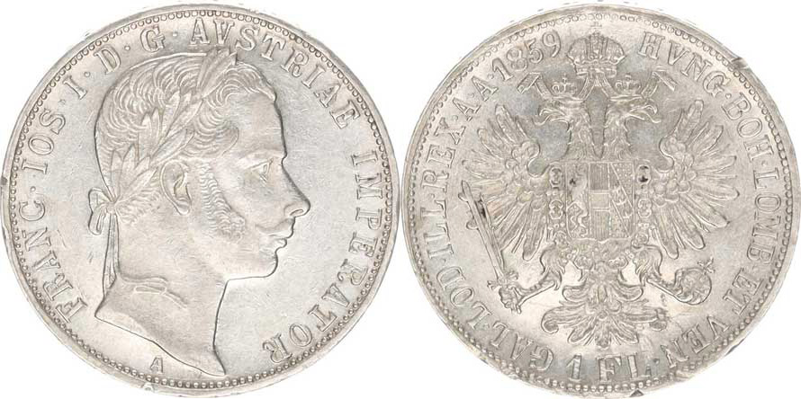 František Josef I.(1848-1918), Zlatník 1859 A - tečka za REX, dr. hr.