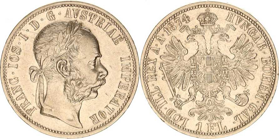 František Josef I.(1848-1918), Zlatník 1874 b.zn. "R", tém.