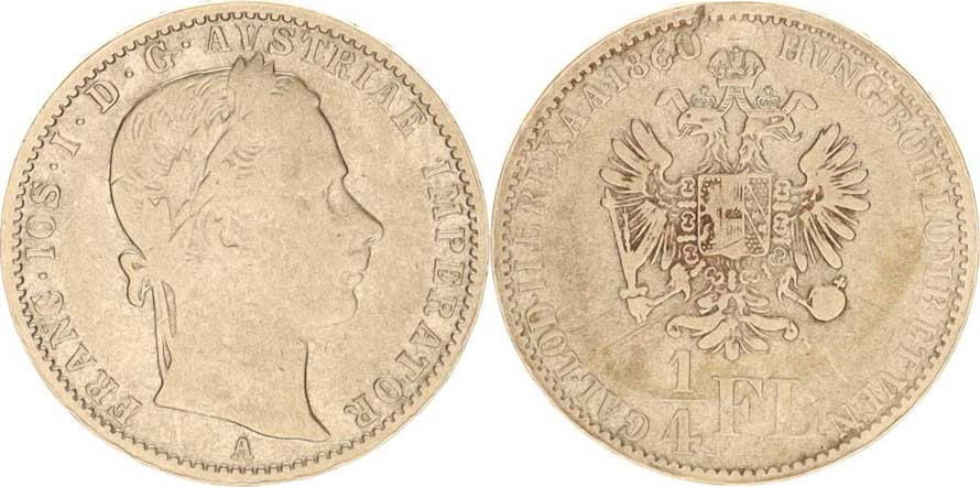 František Josef I.(1848-1918), 1/4 Zlatník 1860 A "R", nep. hr.