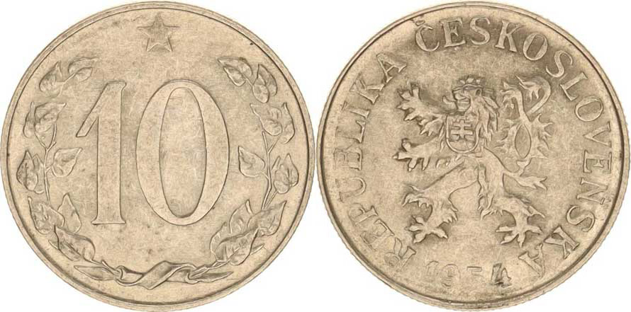 10 hal. 1954, zmetek - mělce ražen letopočet