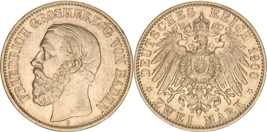 Baden, Friedrich I. (1852-56-1907), 2 Mark 1900 G "RR" KM 269, dr. rys.