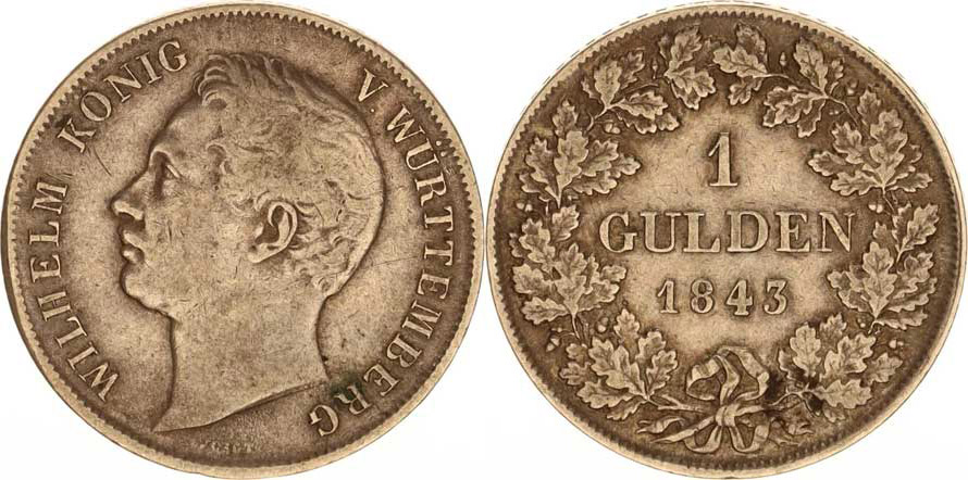 Württemberg, Wilhelm I. (1816-1864), Gulden 1843 KM 574