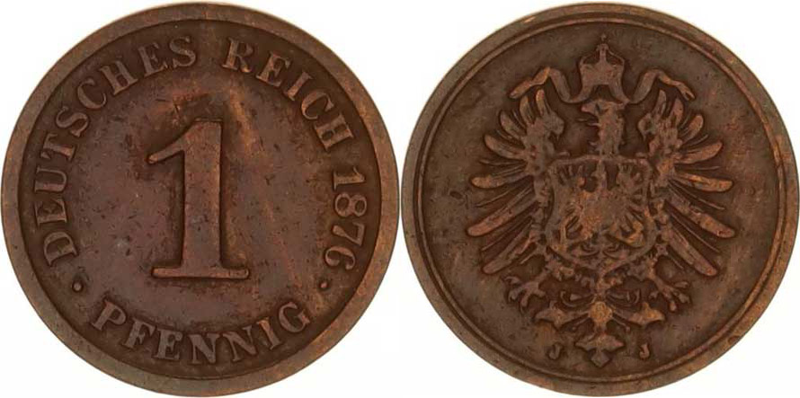 Německo, drobné ražby císařství, 1 Pfennig 1876 J "R"