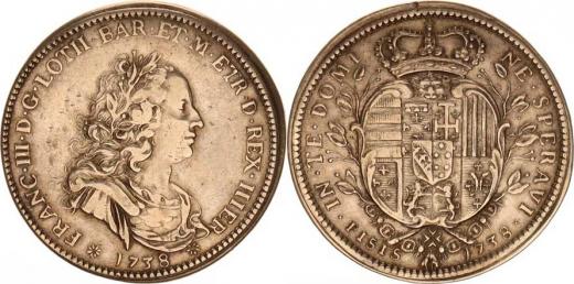 Itálie-Toskánsko, Francesco III. (1737-1746), 1/2 Francescone (5 Paoli) 1738, Pisa Cr. 6 "R"