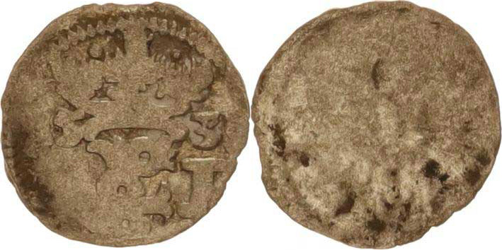 Malý (černý) peníz 1539?, K.Hora jako MKČ 85 var.: nad korunou dvě tečky "R", nedor.