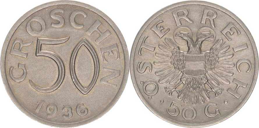 Rakousko, 50 Groschen 1936 "R" KM 2854