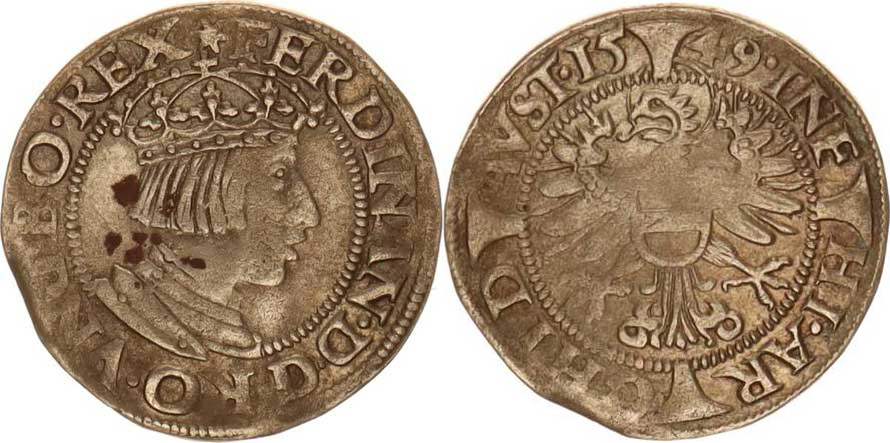 Ferdinand I. (1526-1564), 3 kr. 1549 Vídeň, mír. kraj. stř., dr. nedor.