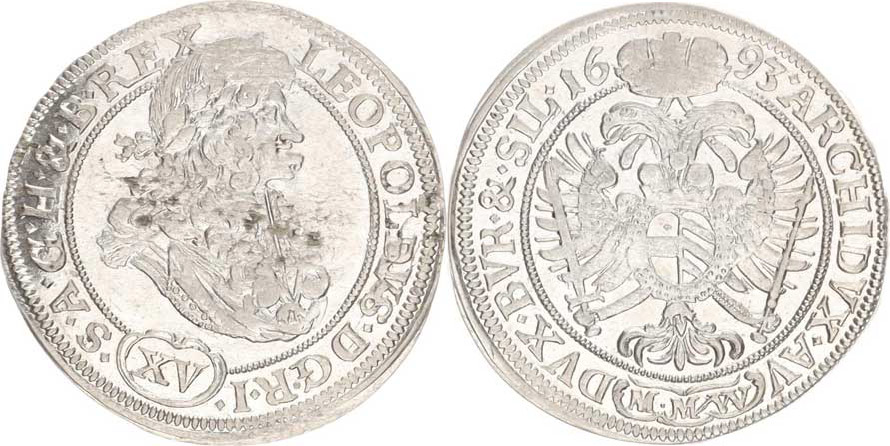 Leopold I. (1657-1705), XV kr. 1693 MMW, Vratislav-Wackerl Hol.93.1,2 var. A
