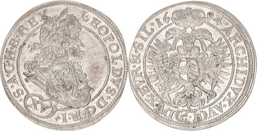 Leopold I. (1657-1705), XV kr. 1694 CB, Břeh-Brettschneider Hol.94.1,5
