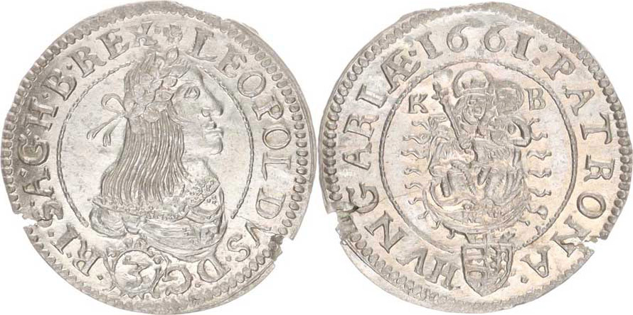 Leopold I. (1657-1705), 3 kr. 1661 KB - PATRONA Hus. 1463; Hal. 387 var.: D. G.