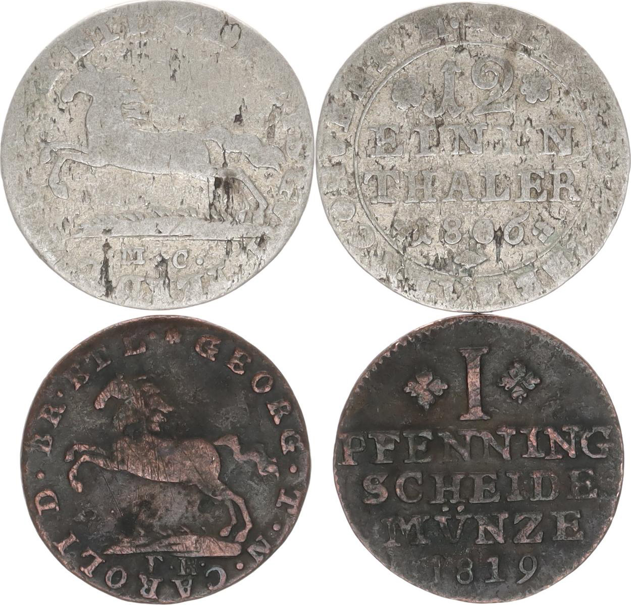 1 Pfenning 1819 FR - opis: GEORG T.N. KM 10771/12 tolaru 1806 MC KM 1000 "R" 2 ks