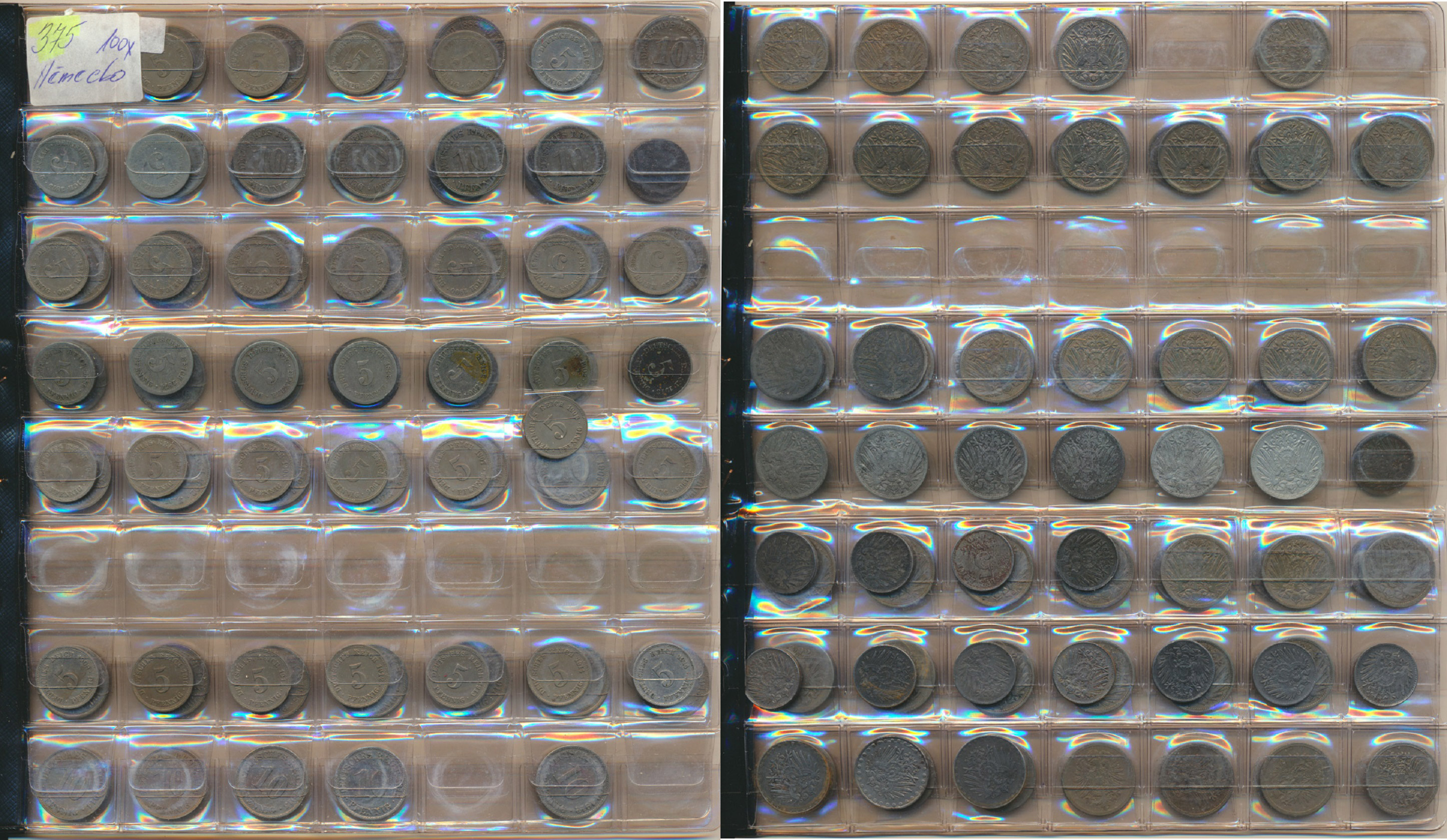 Konvolut 100 kusů mincí 5, +10 Pfennige 1874-1922 ve třech alb.listech