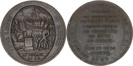 5 Sols - Token 1792, Monneron Freres Paříž KM Tn 31