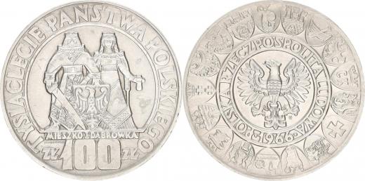 100 Zlotych 1966 - 1000 let Polska "R" Y. 57; Parch. 268