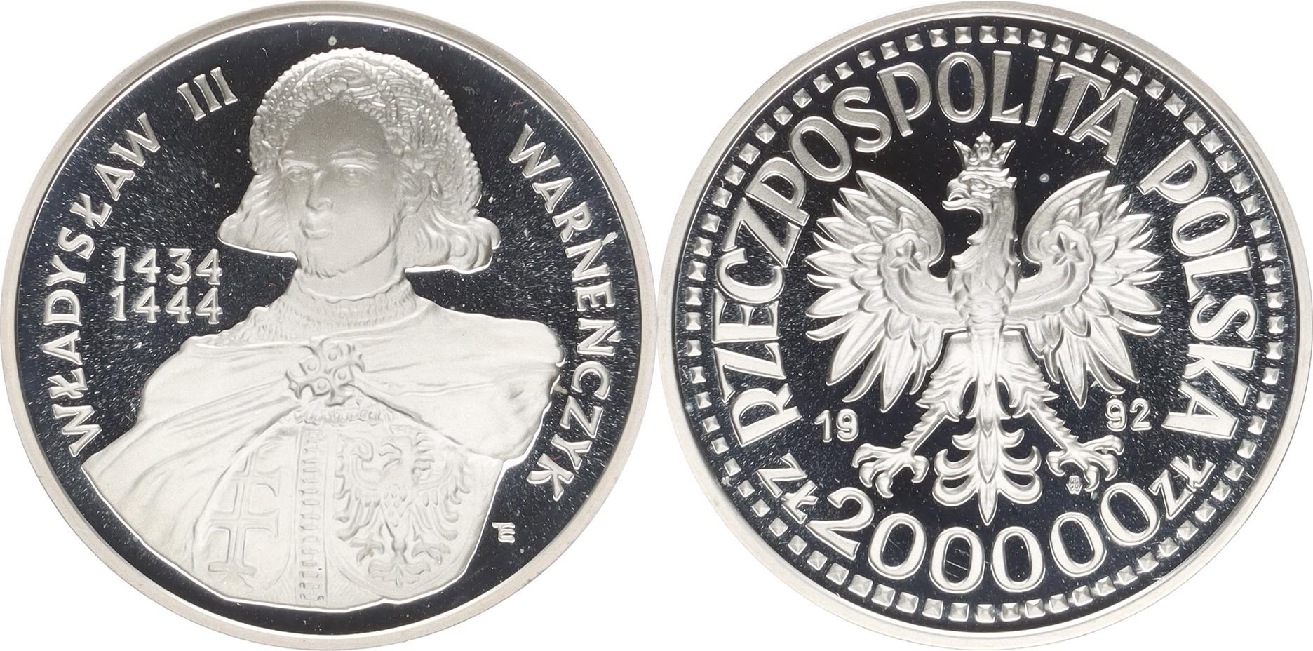 200 000 Zlotych 1992 - Wladyslaw III. Warnenczyk Y.253 I. typ, s náprsenkou "RR" kapsle
