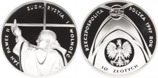 10 Zlotych 1997 - Jan Pawel II. , eucharistický kongres Y. 322 Ag 925 16,50 g kapsle