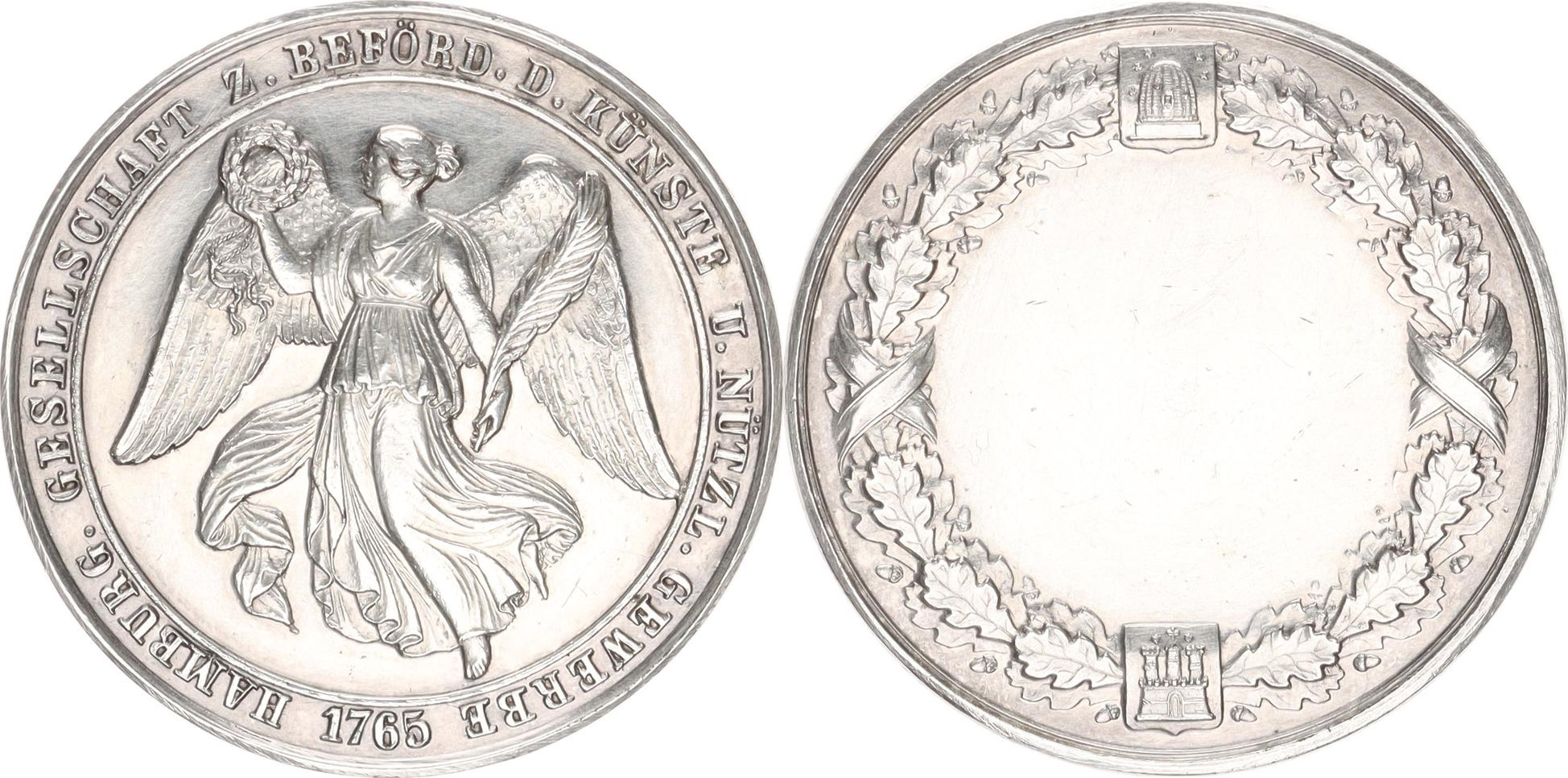 Hamburg - Společnost pro propagaci umění a podnikání 1765, anděls věncem a palm. listem / dubový věnec přerušený včelím úlem a městským znakem, uprostřed místo pro věnování postř. bronz 33,60 mm 15,223 g