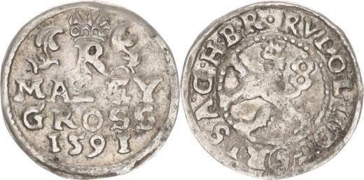 Malý groš 1591, Č.Budějovice-Mattighofer HN 27 bez teček v av.(0,965 g)