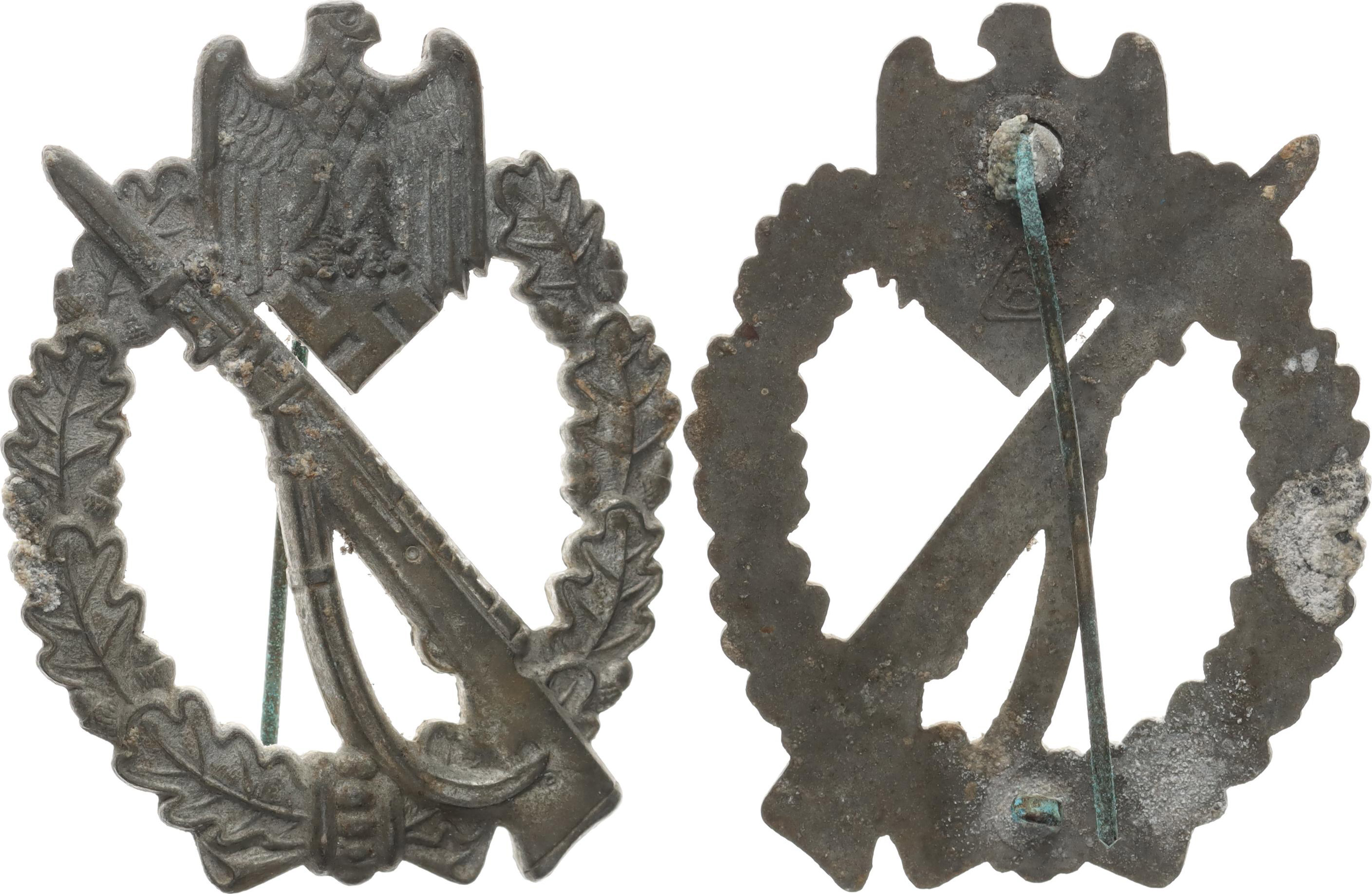 Útočný pěchotný odznak "Infanterie-Sturmabzeichen" patin. bronz48x63 mm zn. ražebny AS v trojúhelníku Hartung 72;Nim. 3891 orig. spona_nález. patina