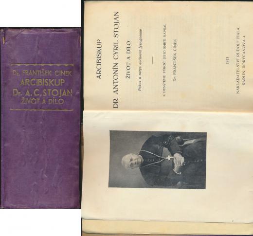 Cinek Frant.: Arcibiskup Dr. Antonín Cyril Stojan - život a dílo, Pokus o nárys duchovní fysiognomie, (k desátému výročí jeho smrtivydalo Lidové knihkupectví v Olomouci 1933) 1180 stran !"vzácné"_tém.