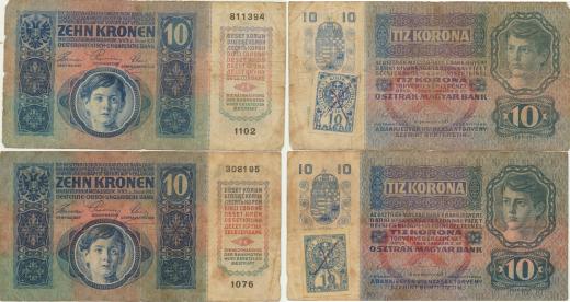 10 K 1915 sér. 1076 a 1102 - stříhaný kolek Baj. 1a 2 ks