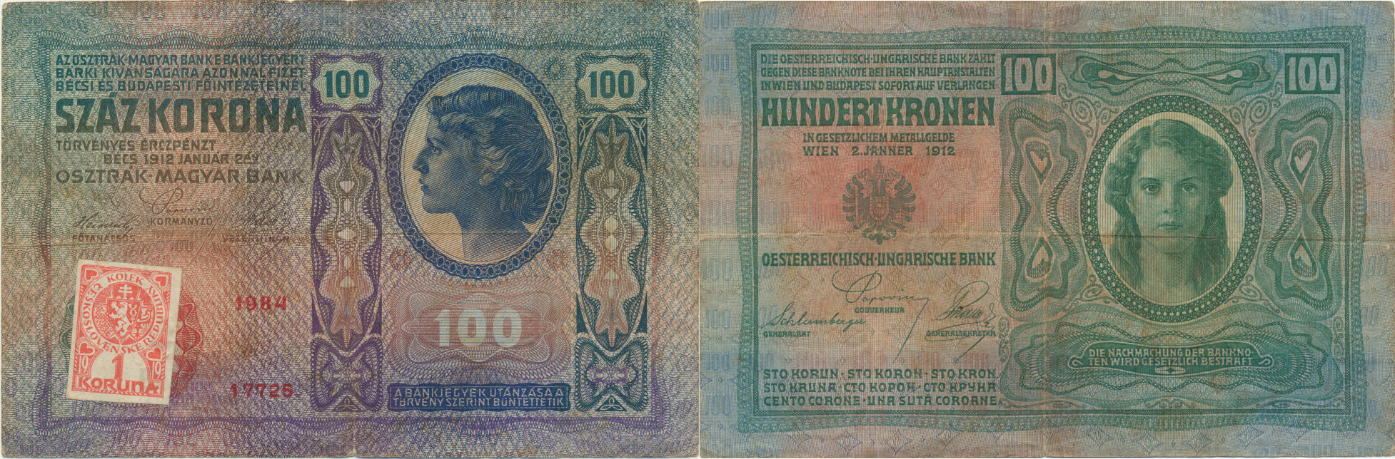 100 K 1912 sér. 1984 - stříhaný kolek Baj. 5a