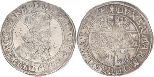 24 kr. 1620, Praha-Škréta, sedmiznak. MKČ 658 var. mincovnízn. volně "R" (7,429 g)_mír. nedor.