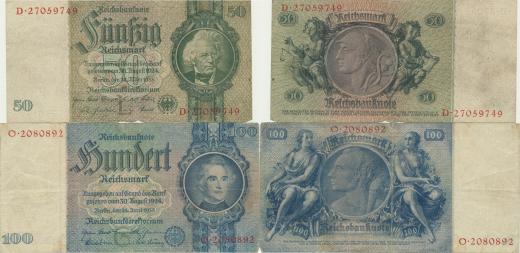 100 RM 1935 - mírová, sér. O - podtisk G Baj. D850 RM 1933 - mírová, sér. D -"- L Baj. D6 2 ks