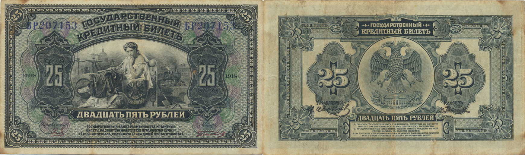 25 Rubl 1918 (1920) - Přiamurská oblast Pick S1248_hněd. skvr.