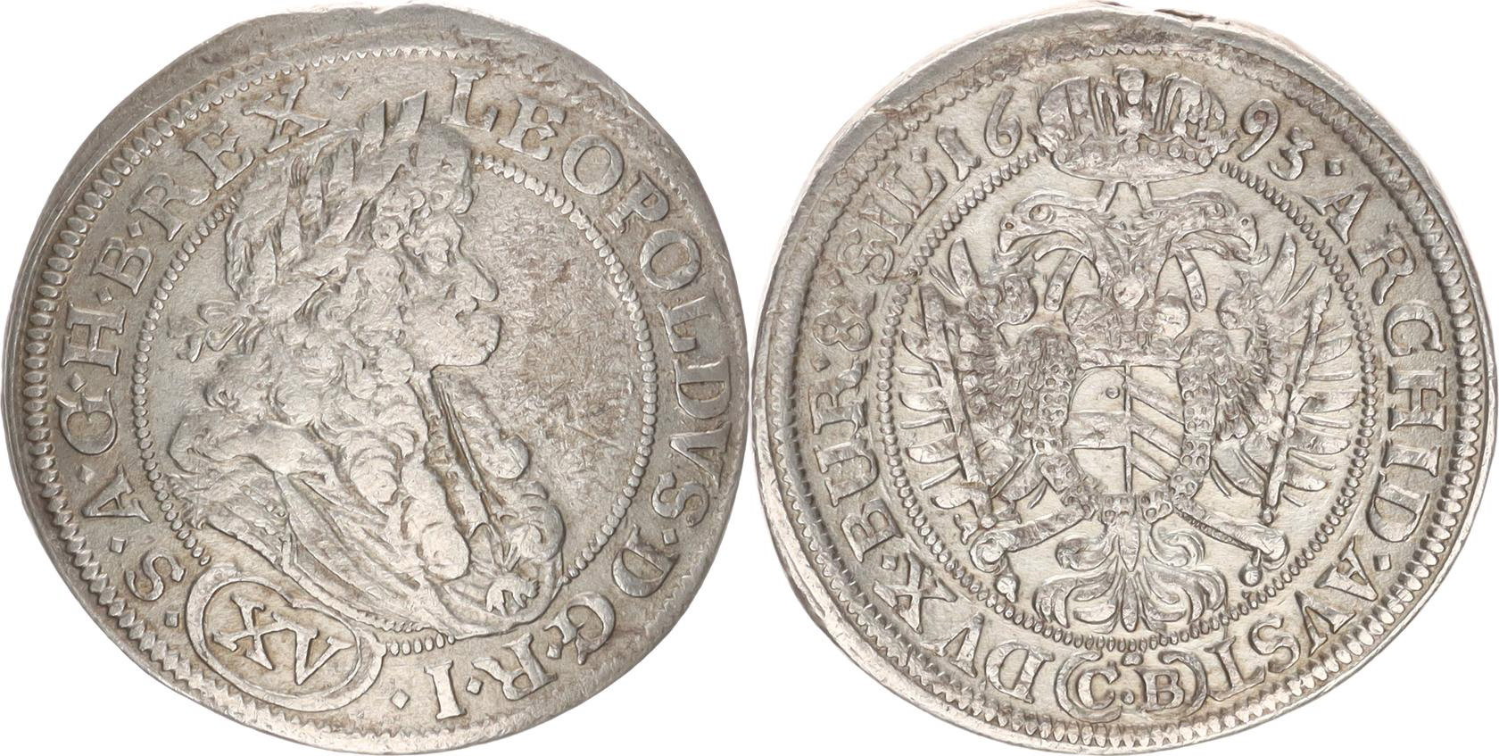 XV kr. 1693 CB, Břeh-Brettschneider Hol. 93.1,1 "RR""válcov. ražba"