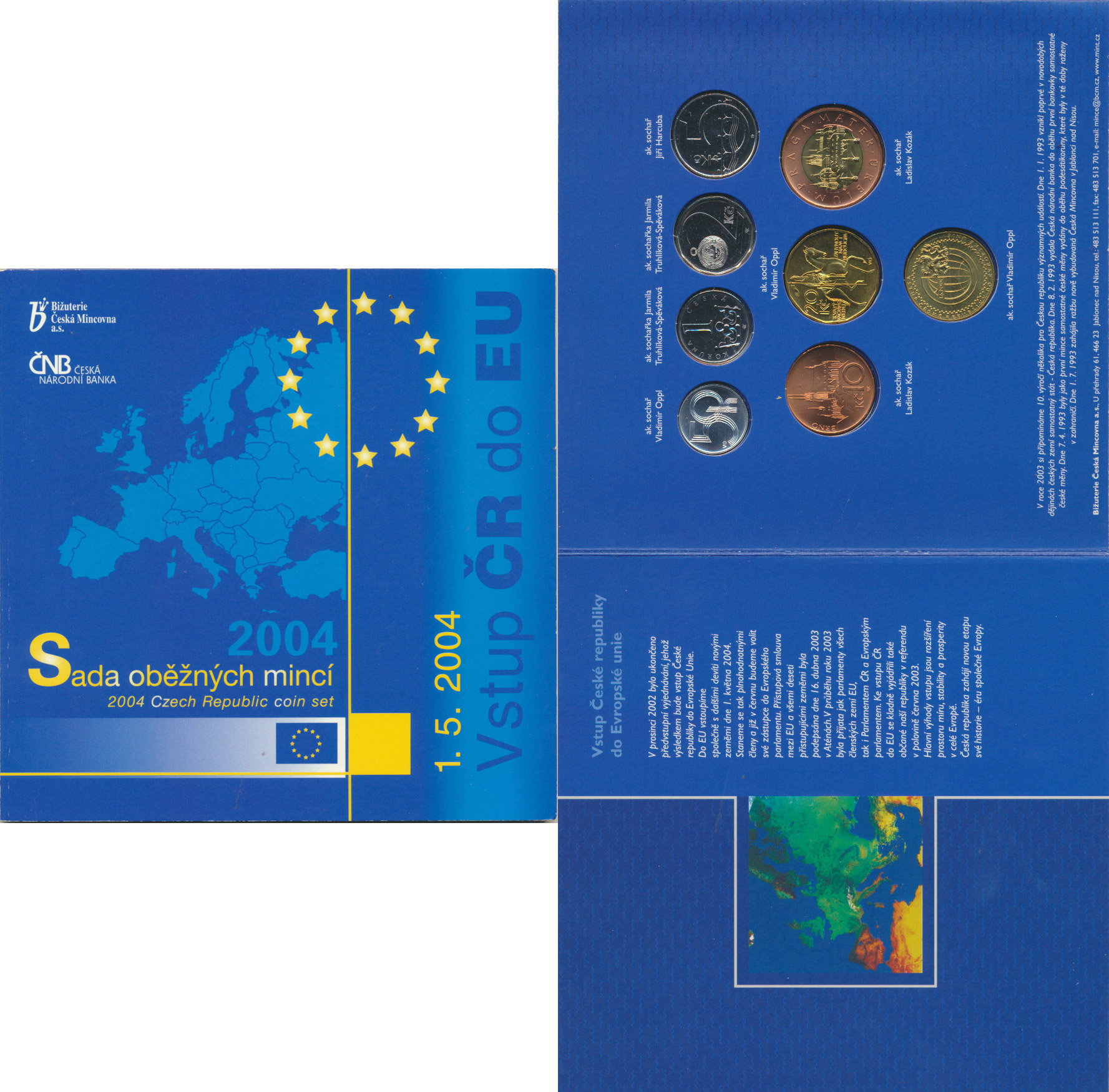 Ročníková sada mincí 2004 - vstup ČR do EU (13 000 ks)"bezchybný kartonový přebal !"