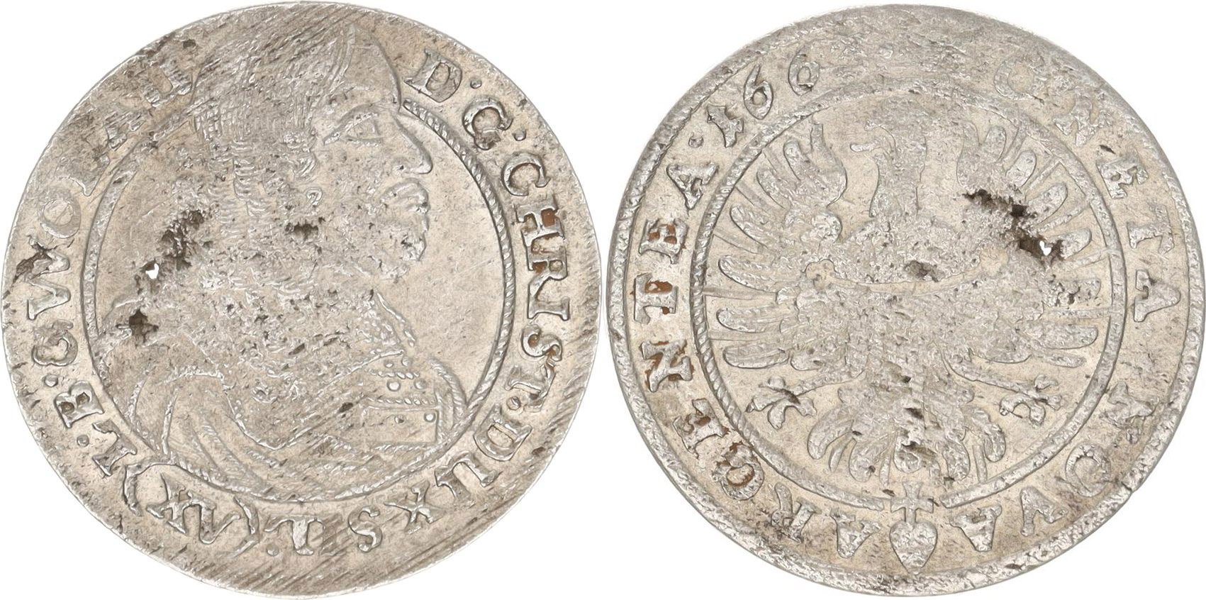 XV kr. 1663 b.zn., Volava Sa 432 opis: D.G.CHRIST.DUX SIL.() L. B. & WOLAU._mělká ražba
