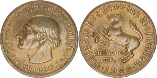 Westfahlen - 50 Millionen Mark 1923, Stein bronz 44,5 mm