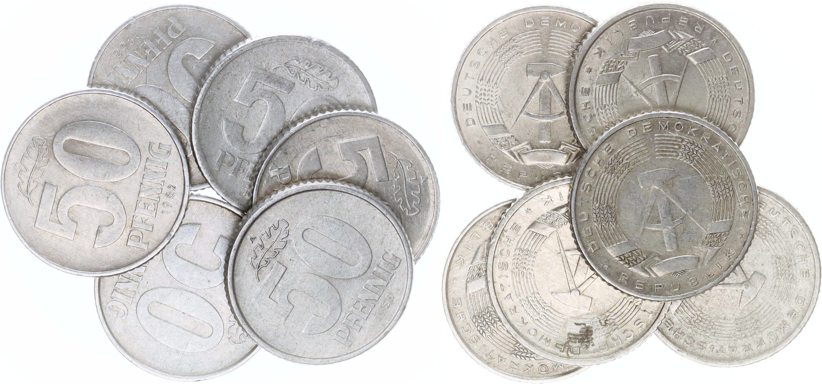 50 Pfennig 1958(2x), 1968,1971,1981,1981 vše A 6 ks